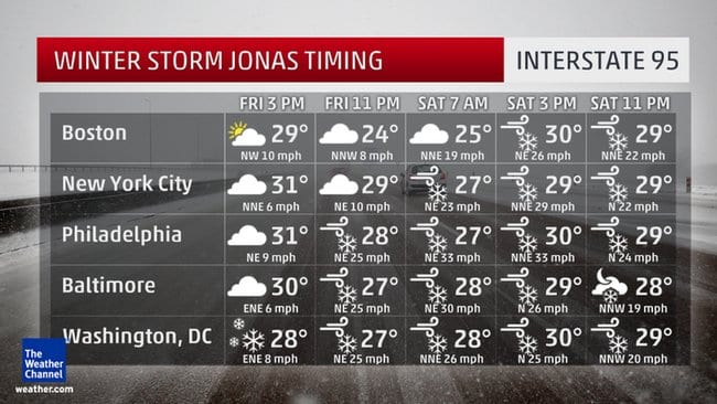Winter Storm Jonas Normal Schedule this weekend Saturday & Sunday 8:30am, 9:30am
