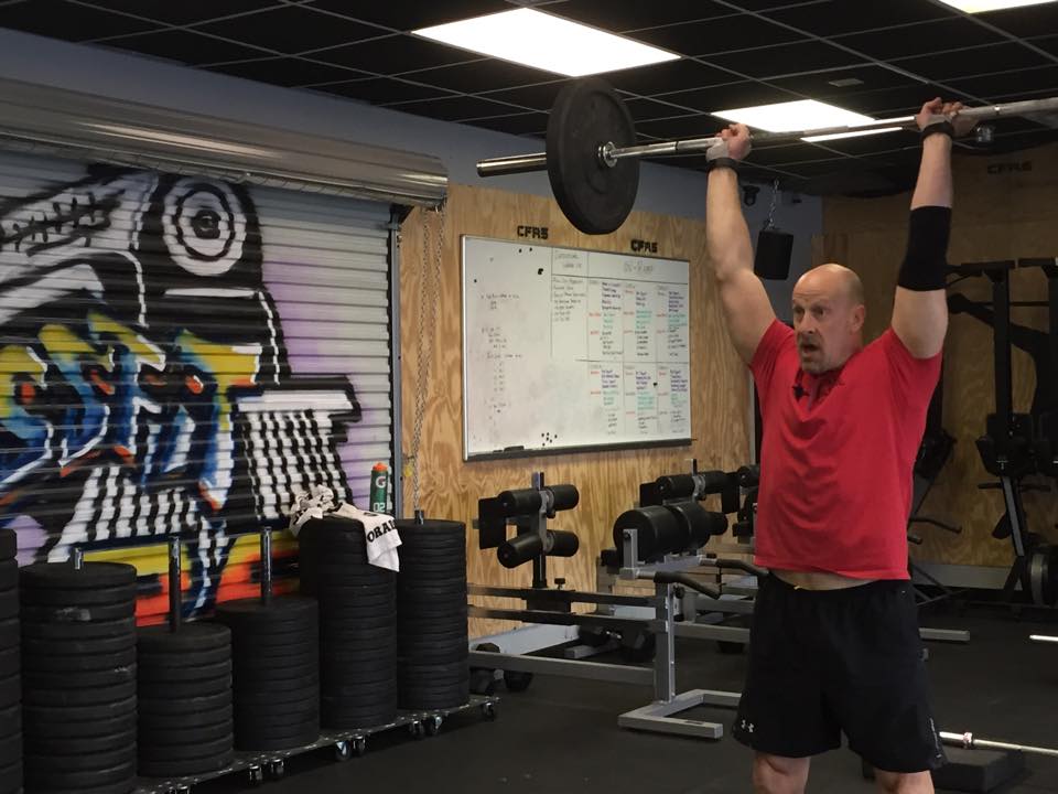@CFR5 A: 3 Position Snatch (8×3) Upper Thigh/Knee/Floor 25 min cap B1: Front Squat (5x3x75) 3-5 warmup sets, then 5x3x75 25 min B2: Power Clean and Jerk (6×1+3) 1 Power Clean + 3 Jerks Superset with front squat